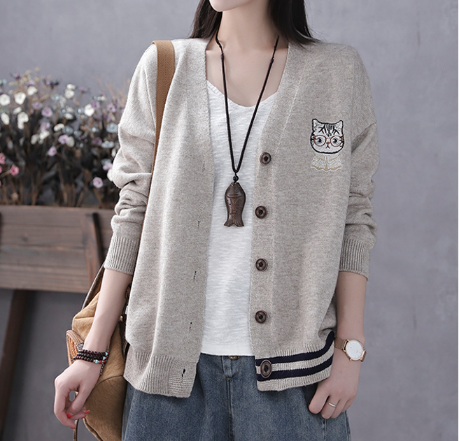 トップス ニットソー 袖あり 羽織る Vネック ニット かわいい 大人可愛い きれいめ シンプル カジュアル 大人 おしゃれ お洒落 大人可愛い ラフ ラブリー キュート ゆるふわ ルーズタイプ 落ち着いた 無地 ワンポイント 猫 春 秋 冬 10代 20代 30代 40代 50代 レディース 女性用 OL 通勤 学生 通学 デート お出かけ 女子会 お泊まり 休日 旅行 高原 ガーデン ショッピング お家デート 公園デート コーデ スタイル 楽ちん フリーサイズ ゆったり ゆる ベージュ ネイビー | Ritta