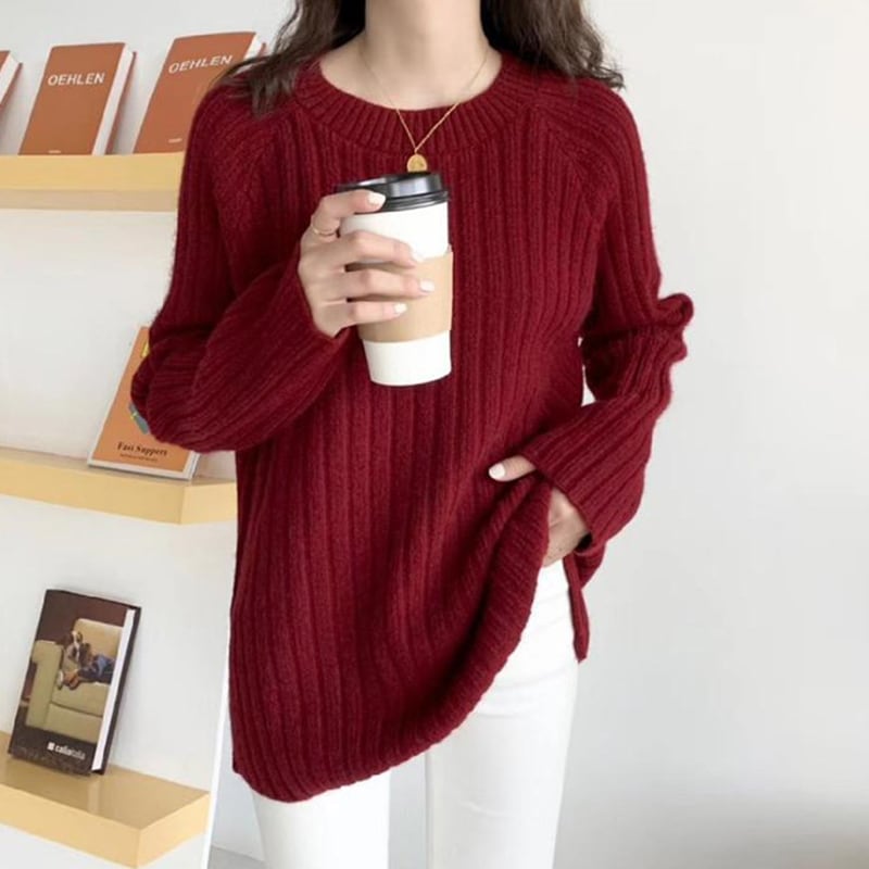 トップス セーター プルオーバー 袖あり 長袖 ラグラン ラウンドネック 襟なし リブニット ワイドリブ ニット かわいい 大人可愛い きれいめ シンプル カジュアル 大人 上品 おしゃれ お洒落 レトロ ルーズ 個性的 モード系 エレガント モダン 抜け感 無地 春 秋 冬 誕生日 クリスマス バレンタイン 10代 20代 30代 40代 50代 レディース 女性用 デート お出かけ 女子会 休日 旅行 ショッピング 着回し 普段使い 楽ちん L XL 2XL 3XL 4XL 大きい 大きめ レッド | Ritta