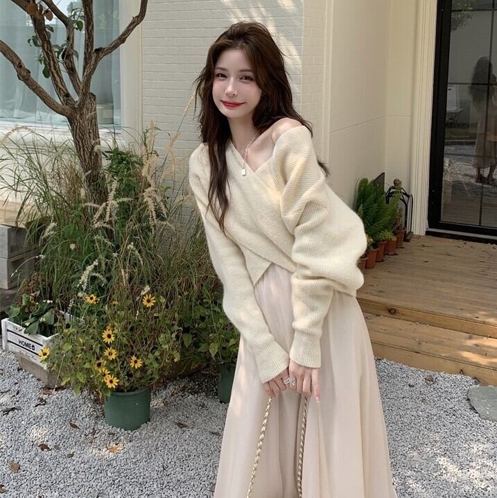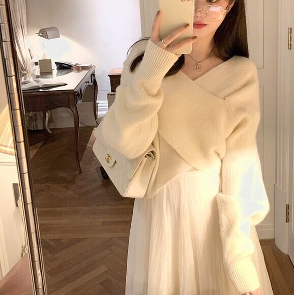 クロスデザインがおしゃれなニットトップス。