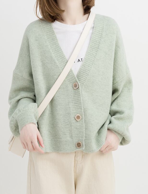 トップス カーディガン ミディアム丈 袖あり 長袖 ボリューム袖 ドロップショルダー 萌袖 Vネック 襟なし ワイド ふわふわ 前開き ニット かわいい 大人可愛い きれいめ シンプル カジュアル 大人 上品 おしゃれ お洒落 大人女子 こなれ感 ラフ キュート ガーリー ルーズ 抜け感 無地 春 秋 10代 20代 30代 40代 レディース 女性用 ママ 女の子 オフィス OL 通勤 学生 通学 デート 女子会 休日 着回し 普段使い フリーサイズ ゆる グリーン ベージュ イエロー ピンク | Ritta