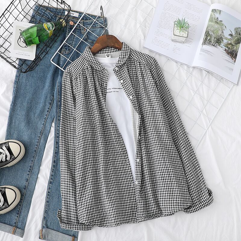 トップス シャツ ブラウス カットソー 白シャツ 白トップス 袖あり 長袖 襟付き 丸襟 前開き シンプル カジュアル おしゃれ お洒落 レトロ こなれ感 ラフ ラブリー キュート ガーリー ルーズ とろみ感 ギンガムチェック チェックシャツ 春 夏 秋 森ガール 甘め デート デートコーデ 学生 10代 20代 白 ホワイト グレー 白黒 グリーン ふわふわ 乙女 ヴィンテージ スタンドカラー 通勤 通学 ボタン 快適 ゆったり ふんわり かわいい 可愛い オフィス オフィスカジュアル OL | Ritta
