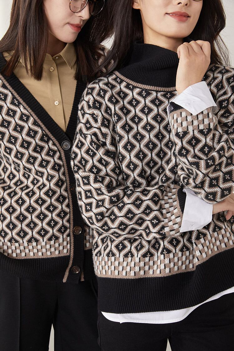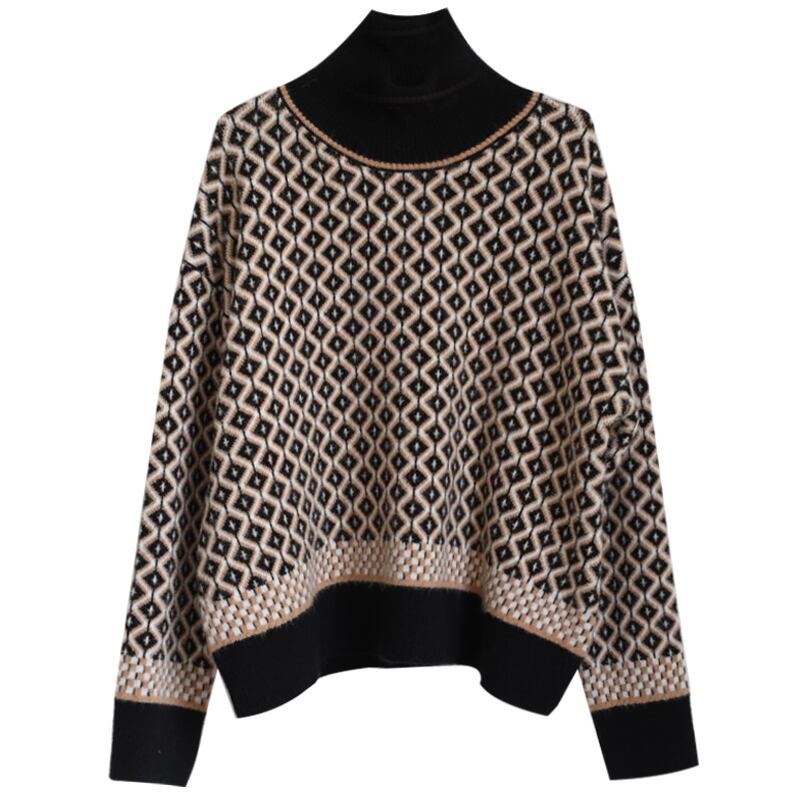 レトロ 重ね着風 トップス セーター プルオーバー 袖あり 長袖 ハイネック ニット かわいい 大人可愛い きれいめ シンプル カジュアル 大人 上品 おしゃれ お洒落 かっこいい 大人女子 こなれ感 ラフ ルーズ 個性的 クール モード系 セクシー エレガント モダン 主役級 存在感 柄 レトロ柄 冬 誕生日 クリスマス バレンタイン 10代 20代 30代 40代 50代 60代 レディース 女性用 OL デート お出かけ 女子会 休日 旅行 ショッピング 普段使い 楽ちん S M L XL 2XL | Ritta