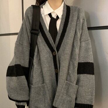 ルーズなスクールガールのような雰囲気のニットカーディガン。