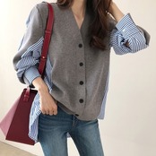 トップス ニットソー セーター カーディガン 袖あり 長袖 Vネック 襟なし ストレート 切り替えデザイン スマート ニット 異素材MIX 大人可愛い きれいめ シンプル カジュアル 大人 上品 おしゃれ お洒落 かっこいい 大人女子 こなれ感 マニッシュ ルーズ 個性的 セクシー 無地 ストライプ 春 秋 冬 20代 30代 40代 レディース 女性用 ママ ビジネス OL 通勤 ホテル レストラン 普段使い モテ S M L XL ゆったり ゆる 黒 ブラック 灰色 グレー | Ritta