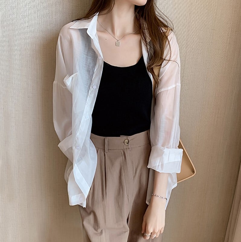 日差しからお肌を守りたい時にも羽織りやすい薄手のシャツ。