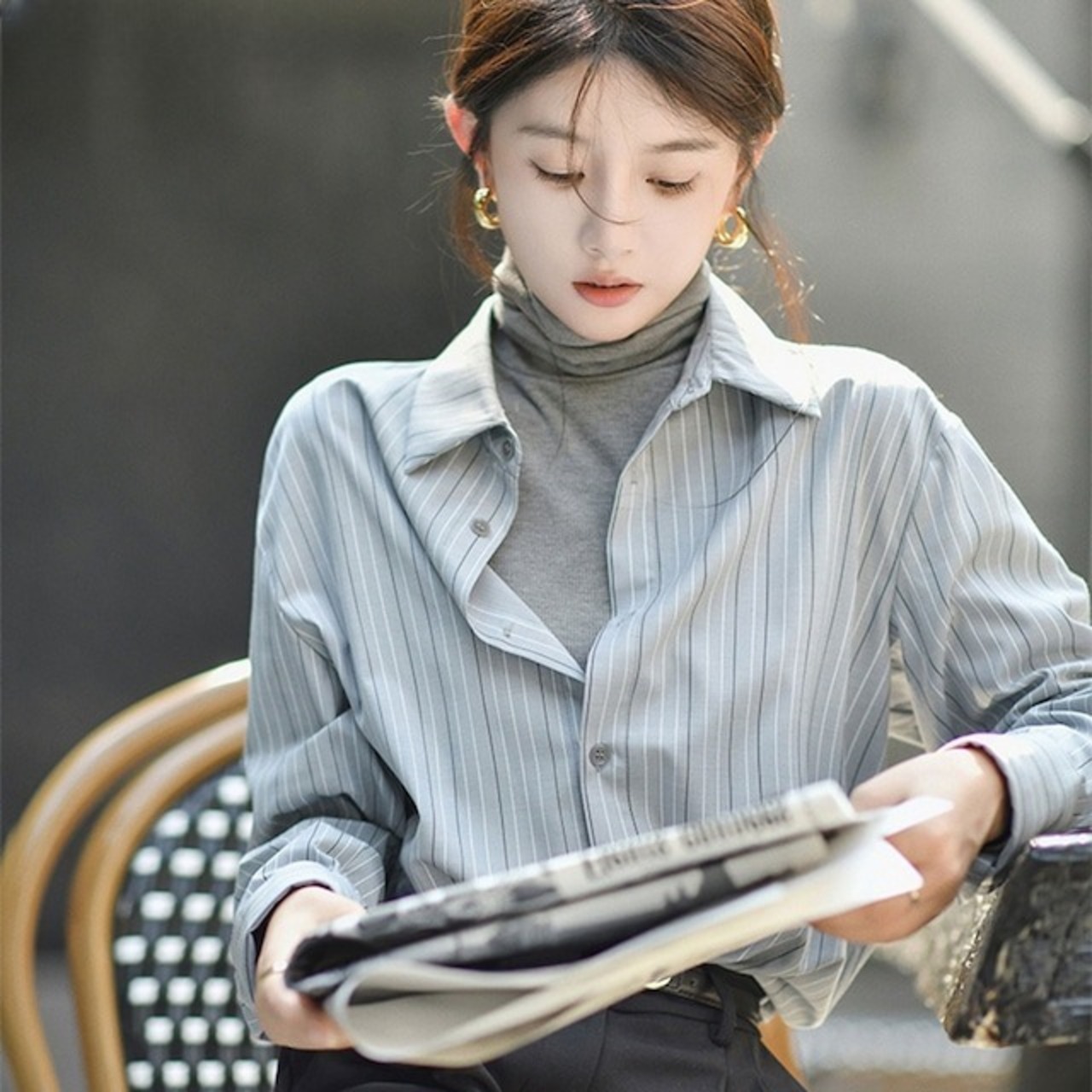 トップス シャツ 袖あり 長袖 大人可愛い きれいめ シンプル 大人 上品 おしゃれ お洒落 かっこいい レトロ 大人可愛い 大人女子 こなれ感 クール モード系 エレガント フォーマル ストライプ シマ 春 秋 冬 入学式 入園式 卒業式 卒園式 謝恩会 二次会 母の日 レディース ビジネス OL 通勤 お出かけ 女子会 イベント レストラン 着回し 普段使い 重ね着 楽ちん モテ 体系カバー S M L XL 2XL 小さいサイズ 大きいサイズ 色展開 ブルー ベージュ ピンク くすみカラー | Ritta