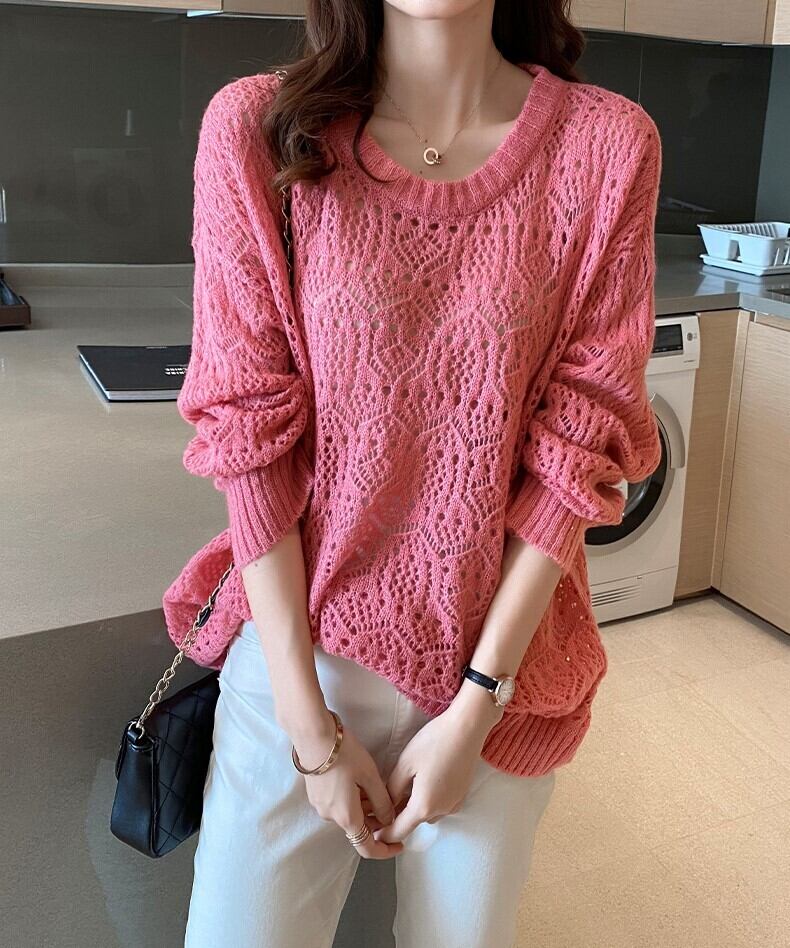 気分を上げてくれる明るい色味のレースのようなセーター。