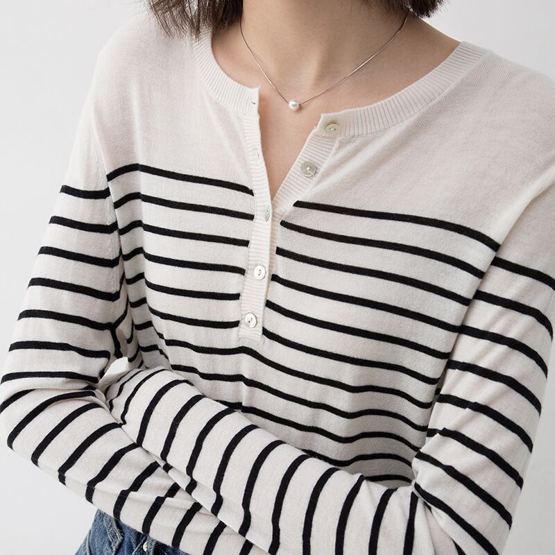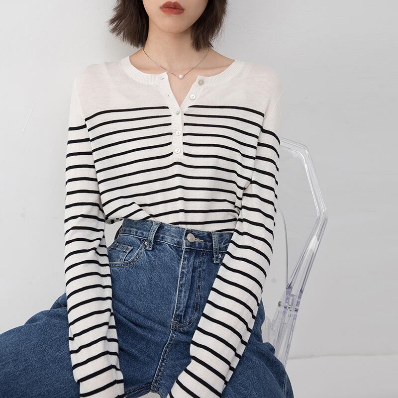 トップス ニットソー 袖あり 長袖 Uネック 襟なし スマート ニット 薄手 かわいい 大人可愛い シンプル カジュアル おしゃれ お洒落 大人可愛い こなれ感 ラフ マニッシュ ルーズ モード系 とろみ感 抜け感 ボーダー 春 秋 冬 10代 20代 30代 40代 50代 60代 レディース 女性用 ママ 学生 デート お出かけ 公園デビュー 女子会 お泊まり 休日 旅行 海 ガーデン レストラン 着回し 普段使い 重ね着 お揃い ファッション コーデ スタイル 楽ちん モテ M L 白 黒 | Ritta