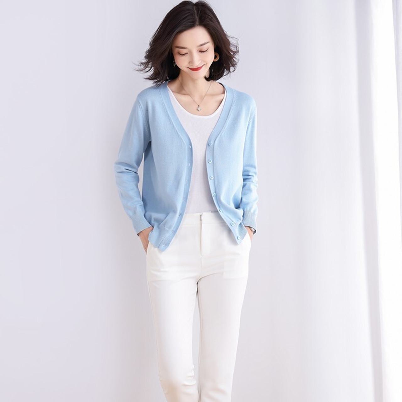 トップス ニットソー カーディガン 袖あり 長袖 Vネック 前開き かわいい 大人可愛い きれいめ シンプル カジュアル 大人 上品 大人可愛い 大人女子 こなれ感 ラフ クール 無地 春 夏 秋 冬 オールシーズン 10代 20代 30代 40代 50代 レディース 女性用 オフィス ビジネス OL 通勤 学生 通学 デート お出かけ 公園デビュー 女子会 お泊まり 休日 リゾート 旅行 S M L XL 2XL 大きいサイズ 黒 ブラック 青 ブルー | Ritta