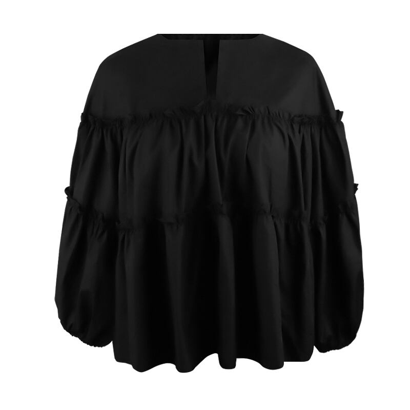 ボリューム袖と段になったフリルが可愛いブラウス。