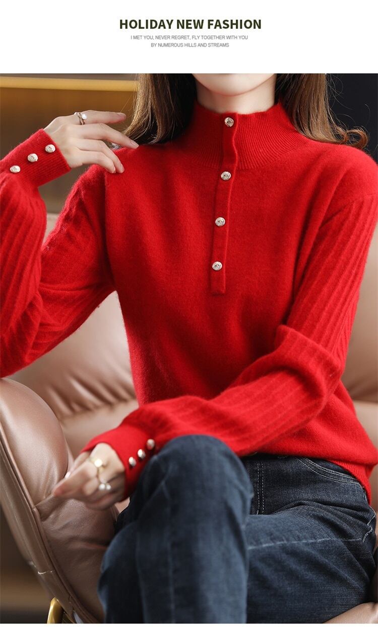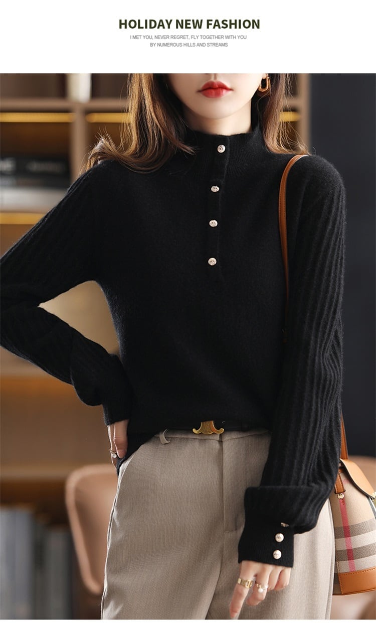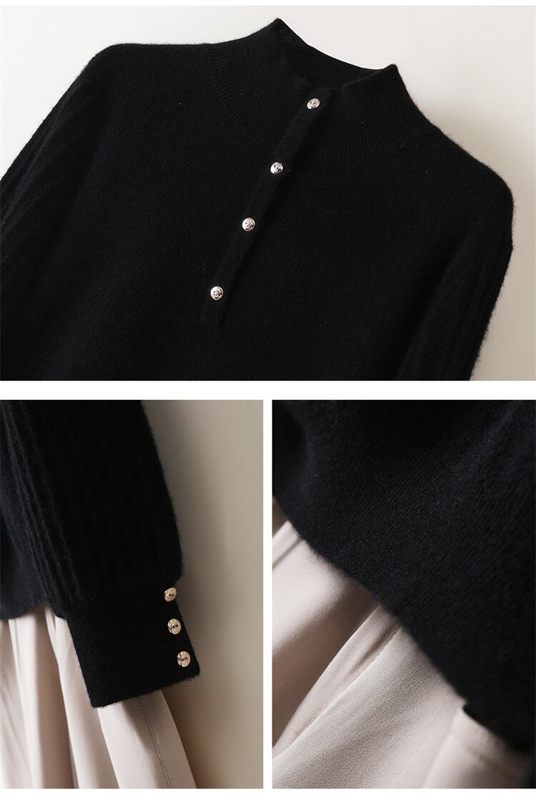 手首につく金ボタンが素敵なタートルネックセーターです。