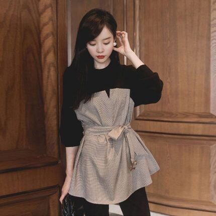 トップス シャツ カットソー ストレートパンツ ミディアム丈 袖あり ボリューム袖 パフスリーブ ラウンドネック 襟なし フレア セミフレア ワイド ペプラム Aライン 切り替えデザイン 切り替えデザイン かわいい 大人可愛い きれいめ カジュアル 大人 上品 おしゃれ お洒落 大人女子 こなれ感 ラブリー キュート ガーリー 無地 チェック柄 グレンチェック 春 秋 20代 30代 40代 OL 通勤 学生 通学 デート 休日 旅行 着回し 普段使い モテ S M L XL 2XL 黒 ブラック | Ritta