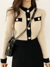 トップス ニットソー カーディガン ショート丈 袖あり 長袖 ハイネック 襟なし スリム タイト 細身 スマート リブ 前開き リブニット 伸縮性 ニット 上下セット 2点セット 大人可愛い きれいめ シンプル 大人 上品 おしゃれ 大人女子 ガーリー エレガント 無地 秋 冬 20代 30代 40代 ビジネス OL 通勤 デート 女子会 旅行 ホテル レストラン 着回し 普段使い ファッション コーデ スタイル S M L 黒 ブラック 大人カラー バイカラー 秋カラー アプリコット | Ritta