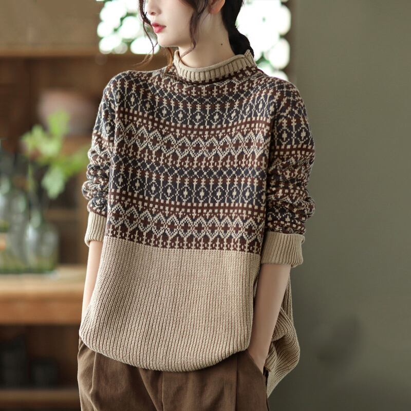 トップス セーター 袖あり 長袖 ハイネック 襟なし スタンドカラー ストレート 切り替えデザイン リブ ニット かわいい 大人可愛い カジュアル 大人 レトロ 大人可愛い 大人女子 こなれ感 ラフ ラブリー キュート ガーリー ルーズ 個性的 主役級 存在感 柄 冬 10代 20代 30代 40代 レディース 女性用 学生 デート お出かけ 公園デビュー 女子会 お泊まり 休日 旅行 高原 ホテル ガーデン レストラン 普段使い ファッション コーデ スタイル 楽ちん 暖かい フリーサイズ ゆったり | Ritta