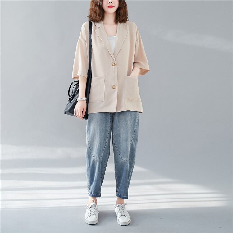 薄手のビッグサイズでコーディネートしやすいジャケット。