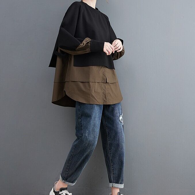 トップス カットソー 袖あり 長袖 ボリューム袖 Uネック ラウンドネック 切り替えデザイン バックコンシャス かわいい 大人可愛い カジュアル おしゃれ お洒落 かっこいい 大人可愛い ラフ 個性的 無地 春 秋 20代 30代 40代 50代 60代 レディース 女性用 お出かけ 公園デビュー 女子会 お泊まり 休日 アウトドア イベント リゾート 旅行 普段使い L XL 黒 ブラック 茶色 ブラウン | Ritta