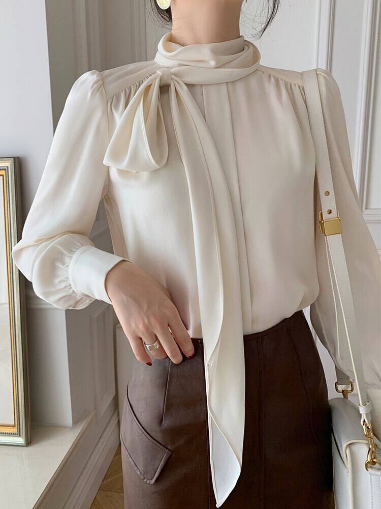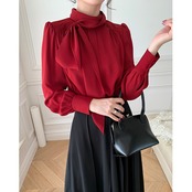 トップス シャツ ブラウス 袖あり 長袖 パフスリーブ スタンドカラー ストレート シフォン リボン バックコンシャス 透け感 ポリエステル 大人可愛い きれいめ シンプル 大人 上品 おしゃれ お洒落 大人女子 エレガント フォーマル とろみ感 無地 春 夏 秋 冬 オールシーズン 入学式 入園式 卒業式 卒園式 謝恩会 10代 20代 30代 40代 レディース 女性用 ママ オフィス ビジネス OL 通勤 デート お出かけ 休日 パーティー 着回し 普段使い 重ね着 S M 赤 レッド ベージュ | Ritta