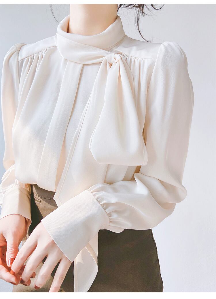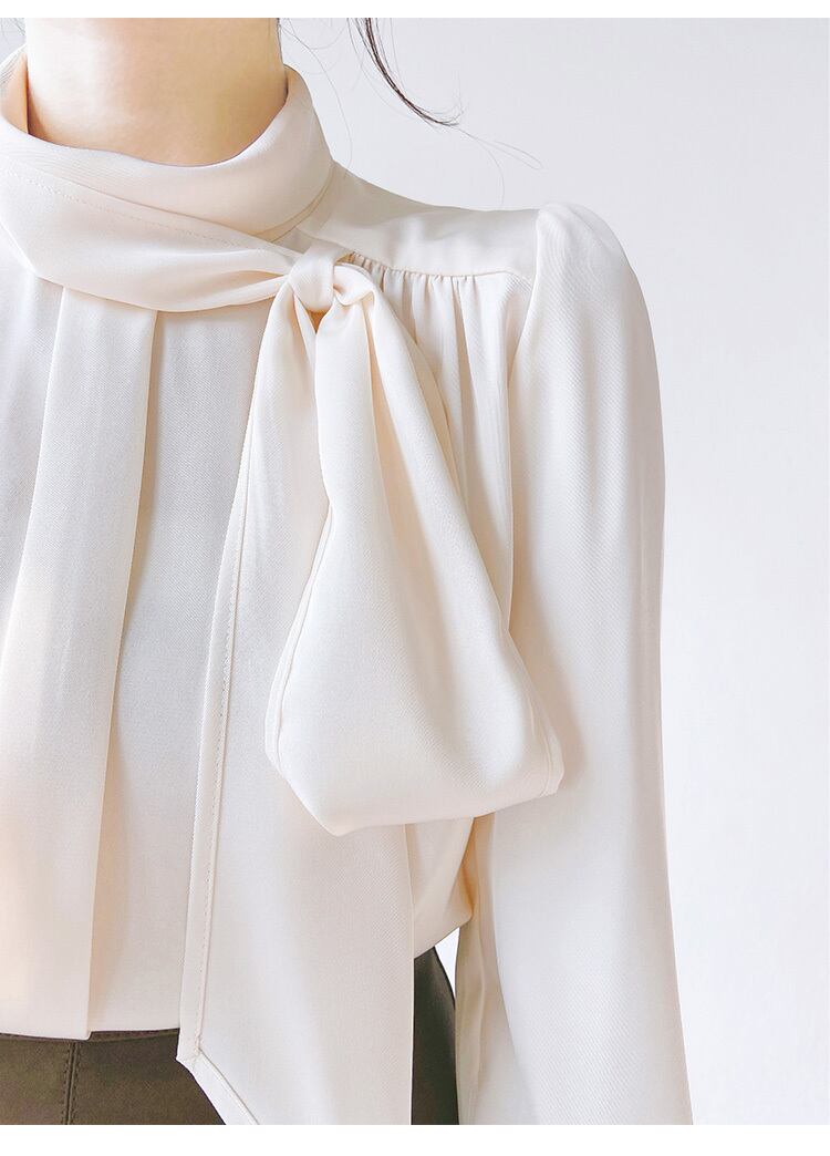 とろみのある生地とスカーフ風リボンが可愛いシフォントップス。