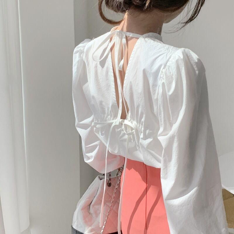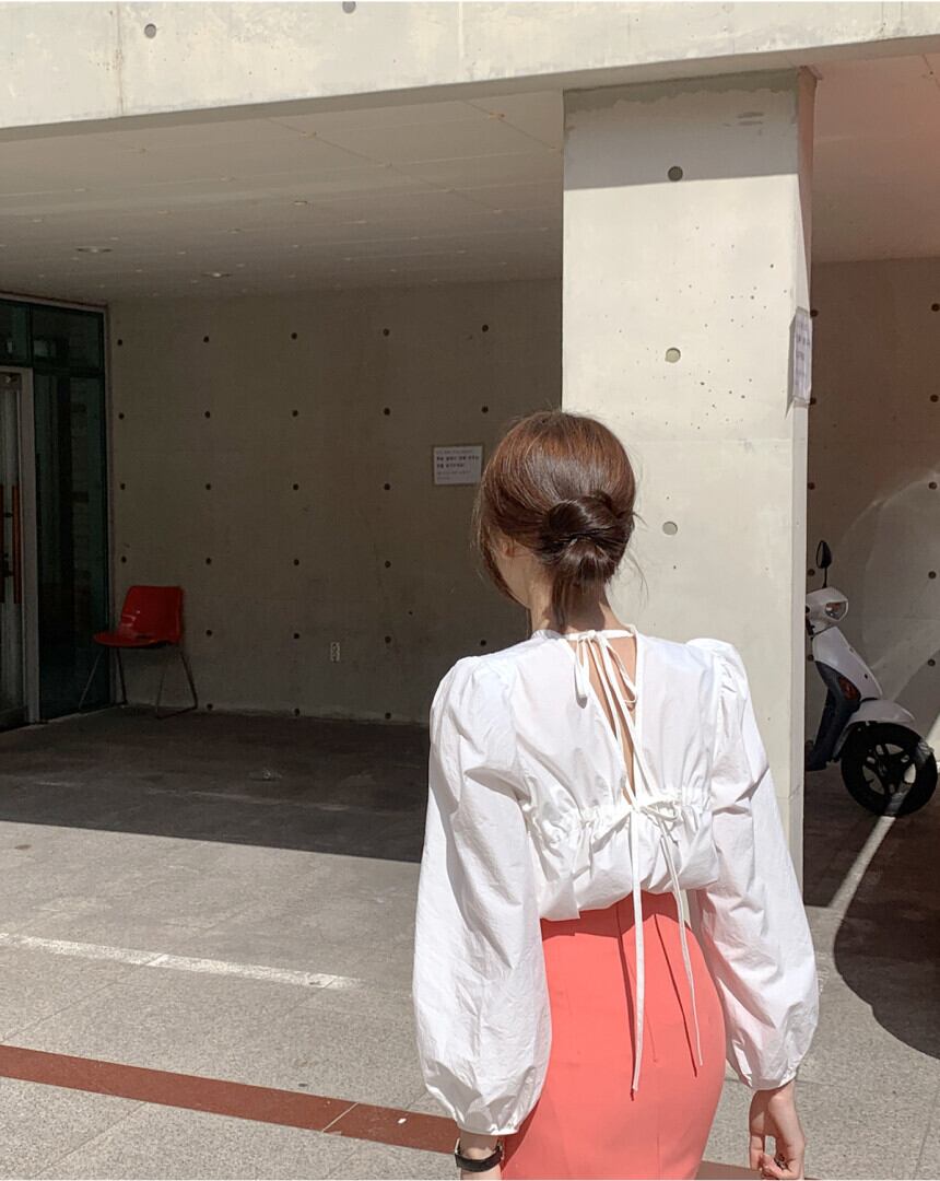 トップス シャツ ブラウス 白シャツ 白トップス 袖あり 長袖 ボリューム袖 クルーネック 襟なし バックスリット バックシャン バックコンシャス かわいい 大人可愛い きれいめ シンプル 大人 上品 おしゃれ お洒落 大人可愛い 大人女子 こなれ感 ラフ ラブリー キュート ガーリー セクシー エレガント 主役級 存在感 無地 レディース 女性用 デート お出かけ 女子会 お泊まり 休日 パーティー イベント 旅行 高原 ホテル ガーデン レストラン インスタ映え フリーサイズ 色展開 白 黒 ベージュ | Ritta