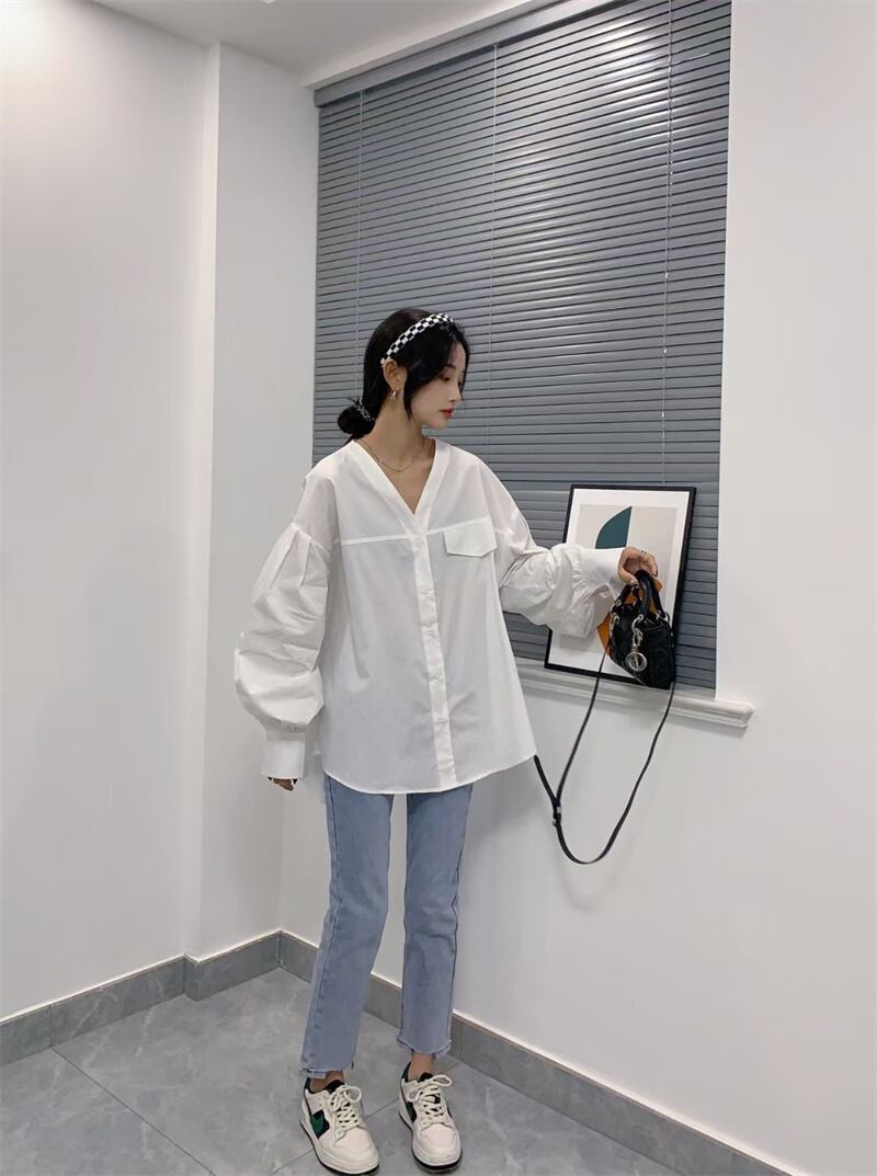 トップス シャツ ブラウス 白シャツ 袖あり 長袖 ボリューム袖 萌袖 バルーンスリーブ Vネック 襟なし ワイド 前開き かわいい 大人可愛い シンプル カジュアル 大人 上品 おしゃれ お洒落 アジアン 大人可愛い こなれ感 ラフ ラブリー キュート ガーリー ルーズ モダン 主役級 抜け感 無地 春 夏 秋 レディース 女性用 デート お出かけ 公園デビュー 女子会 お泊まり イベント リゾート 旅行 海 高原 ホテル ガーデン レストラン 着回し 普段使い 韓国系 スタイル 楽ちん 体系カバー | Ritta