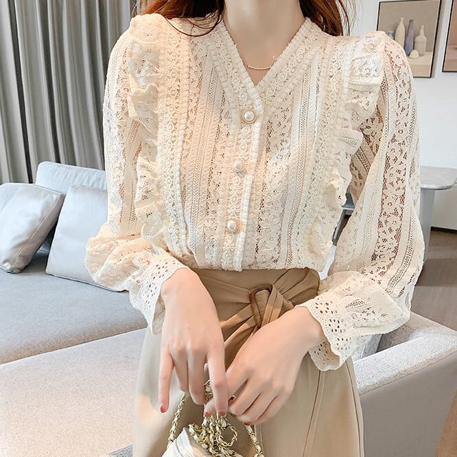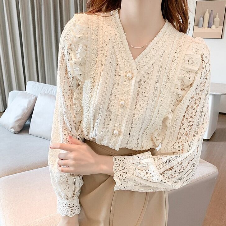 トップス ブラウス カットソー 白トップス 袖あり 長袖 Vネック レース 刺繍 かわいい 大人可愛い きれいめ 大人 大人可愛い 大人女子 ラブリー キュート ガーリー 花柄 春 秋 冬 20代 30代 40代 50代 レディース 女性用 ビジネス OL 通勤 学生 通学 デート お出かけ 公園デビュー 女子会 お泊まり 休日 イベント リゾート 旅行 モテ S M L XL 2XL 白 ホワイト | Ritta