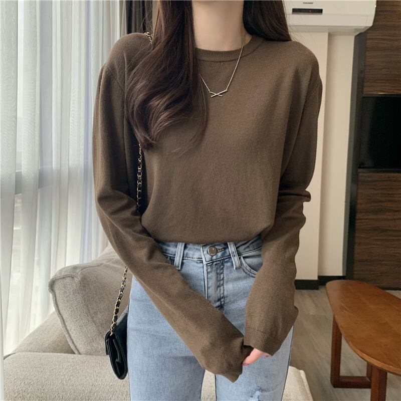 ラウンドネックのシンプルなデザインのニット。