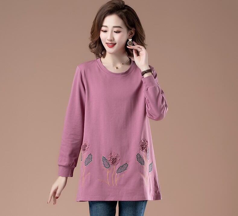 トップス カットソー チュニック ロング丈 袖あり 長袖 ラウンドネック 襟なし Aライン 刺繍 ベルベット 大人可愛い カジュアル 大人 上品 おしゃれ 大人女子 キュート 花柄 フラワー ボタニカル 秋 冬 40代 50代 60代 レディース 女性用 ママ 休日 旅行 着回し 普段使い スタイル 楽ちん 体系カバー 定番 L XL 2XL 3XL 4XL 大きいサイズ 大きい ビッグサイズ ゆったり ゆる サイズ 黒 ブラック 紫 パープル ネイビー 大人カラー 秋カラー カラバリ | Ritta