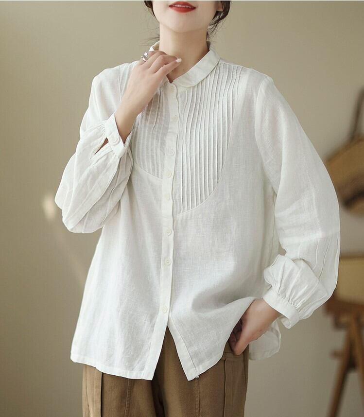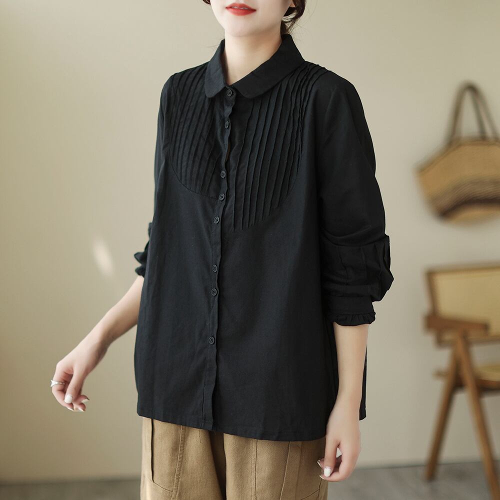 トップス シャツ ブラウス 白シャツ 白トップス 長袖 ボリューム袖 襟付き ワイド アシンメトリー プリーツ 前開き 薄手 大人可愛い きれいめ シンプル カジュアル 大人 上品 おしゃれ レトロ 大人女子 こなれ感 キュート 無地 春 秋 20代 30代 40代 50代 60代 ママ OL 通勤 学生 通学 休日 ガーデン 着回し 普段使い 楽ちん 体系カバー M L XL 2XL 大きいサイズ 大きめ ビッグサイズ ゆったり ゆる 白 ホワイト 黒 ブラック | Ritta