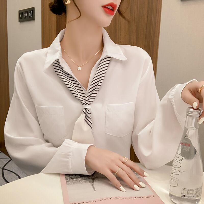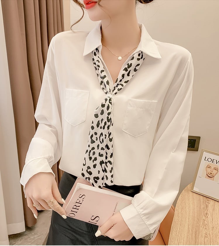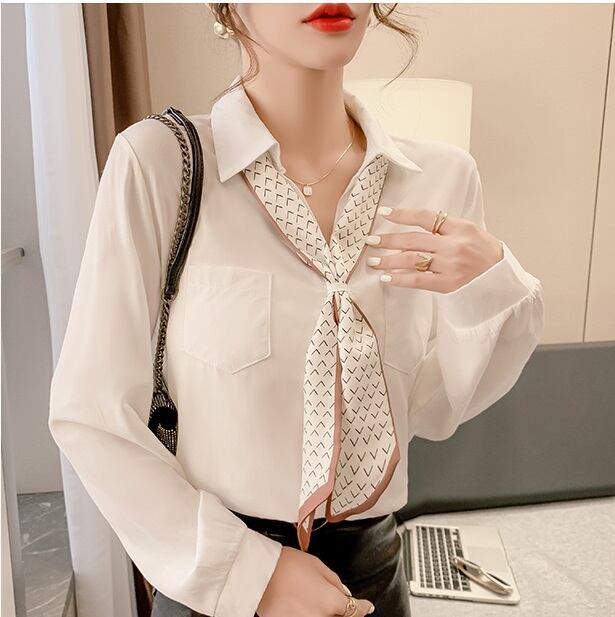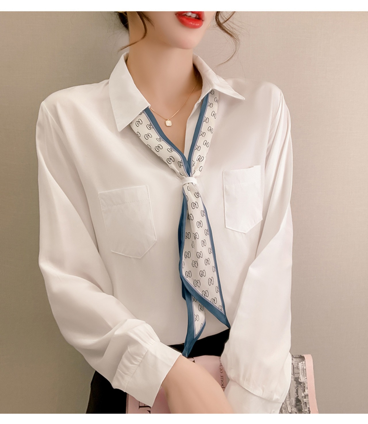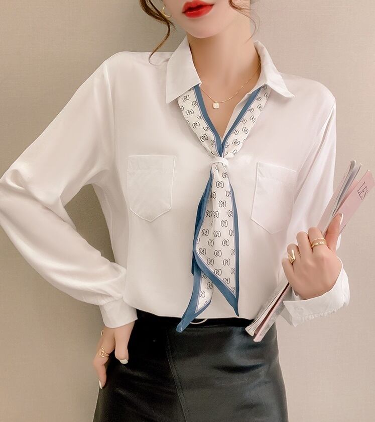 スカーフ付きのシンプルな白シャツです。