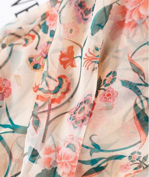 エキゾチックな花柄が目を引くシフォンブラウス。