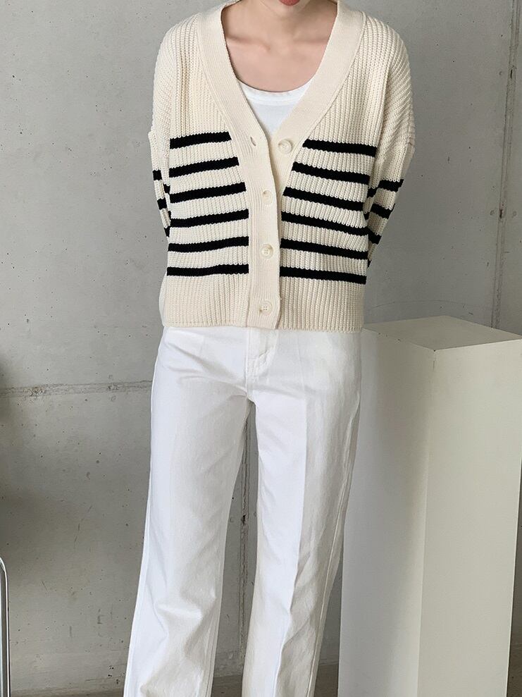 着丈短めのトレンド感のあるリブニットカーディガンです。