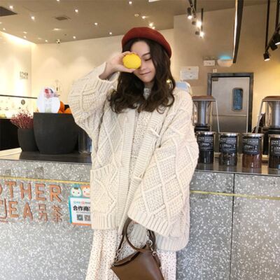 格子柄デザインとぽこぽこした生地が可愛いニットカーディガン。