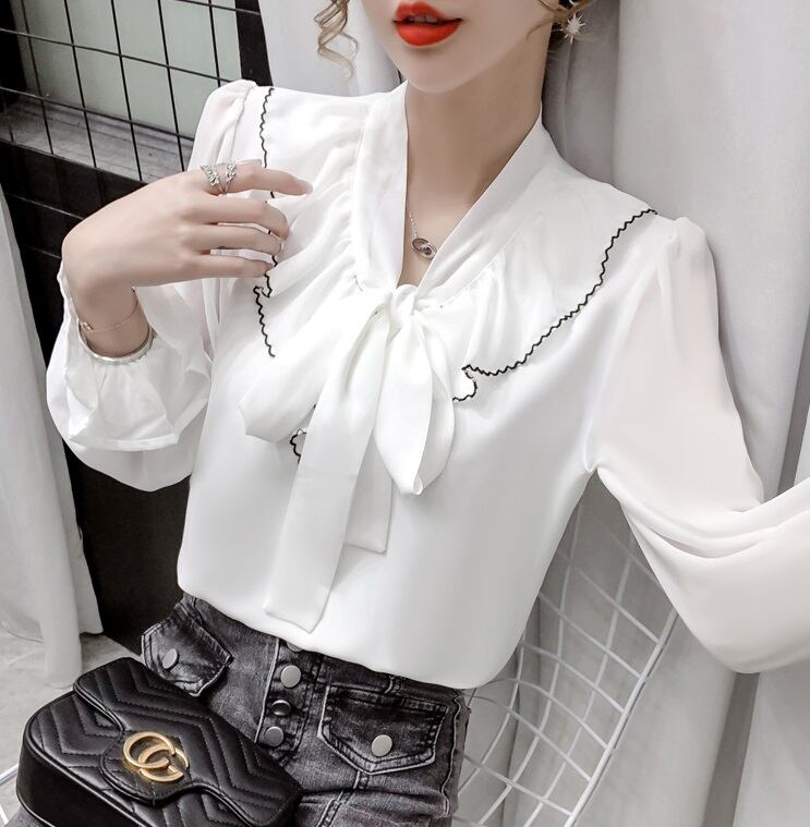 トップス ブラウス 白シャツ 袖あり 長袖 パフスリーブ Vネック 襟なし スリム 細身 ストレート シフォン リボン 透け感 かわいい 大人可愛い きれいめ 大人 上品 おしゃれ お洒落 かっこいい レトロ 大人女子 キュート モード系 セクシー エレガント モダン 主役級 存在感 フォーマル とろみ感 無地 オールシーズン シーズンレス 入学式 卒業式 結婚式 二次会 披露宴 レディース 女性用 ママ ビジネス OL 通勤 デート 女子会 パーティー 旅行 ホテル レストラン 韓国系 ファッション | Ritta