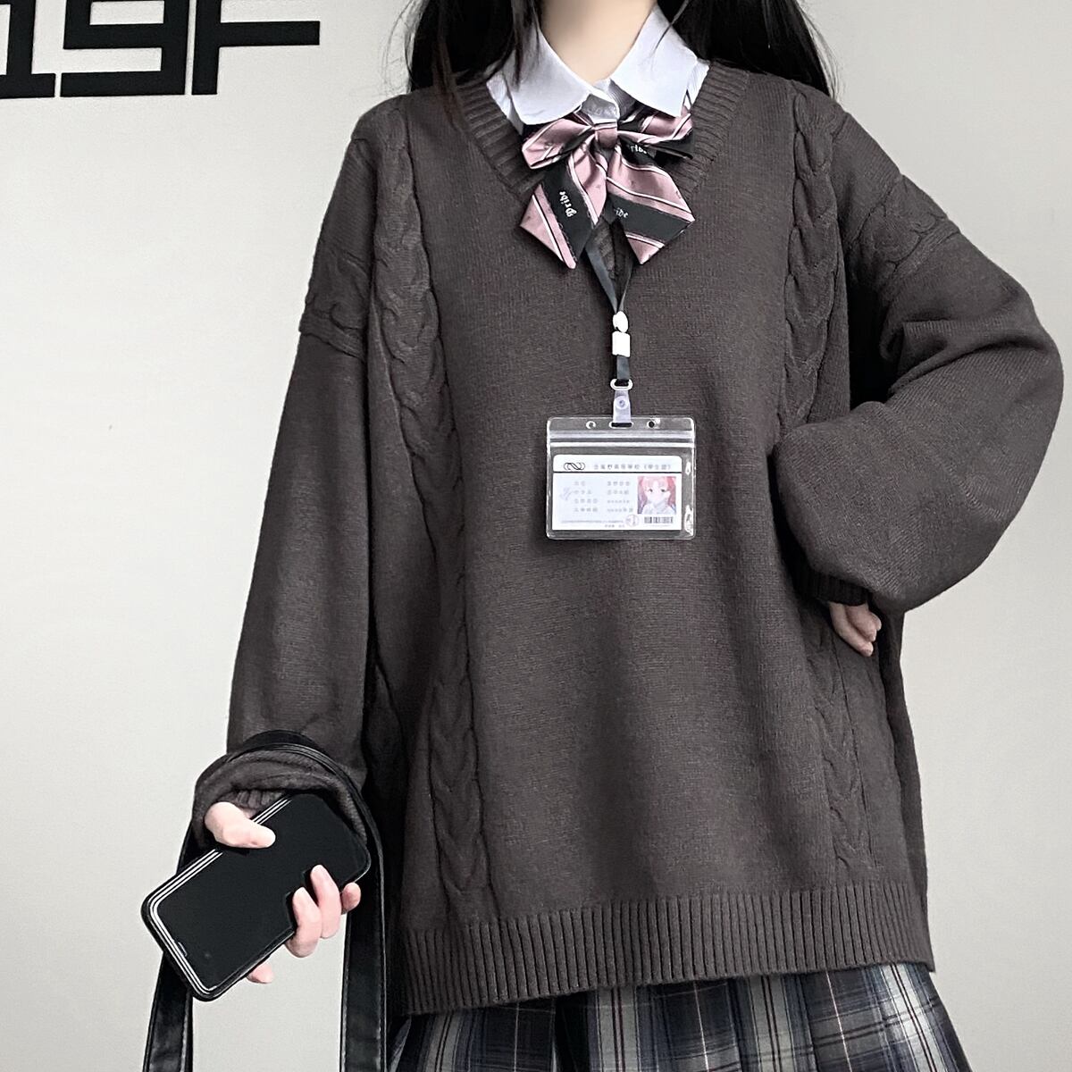 制服と合わせるのにぴったりのゆったりシルエットの長袖ニット。