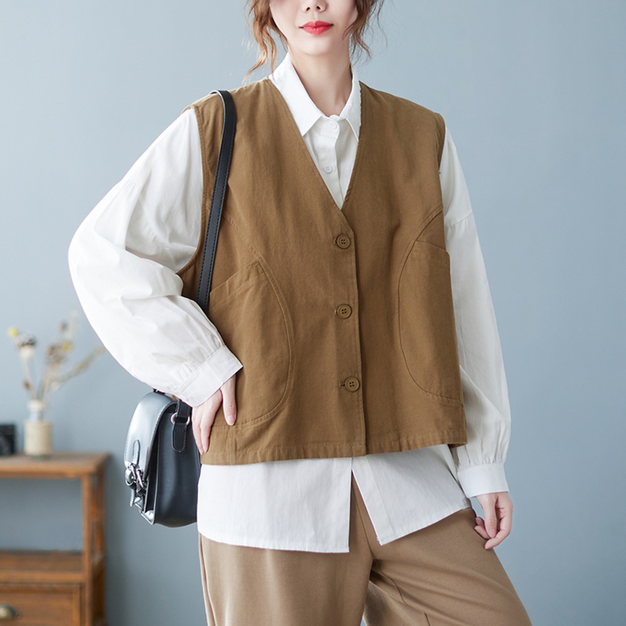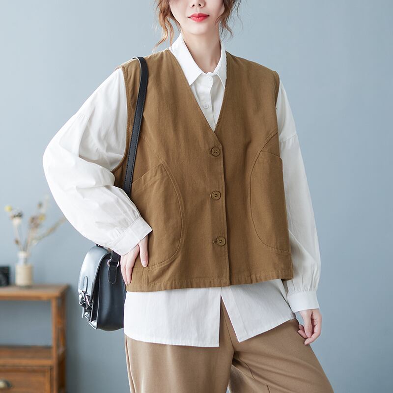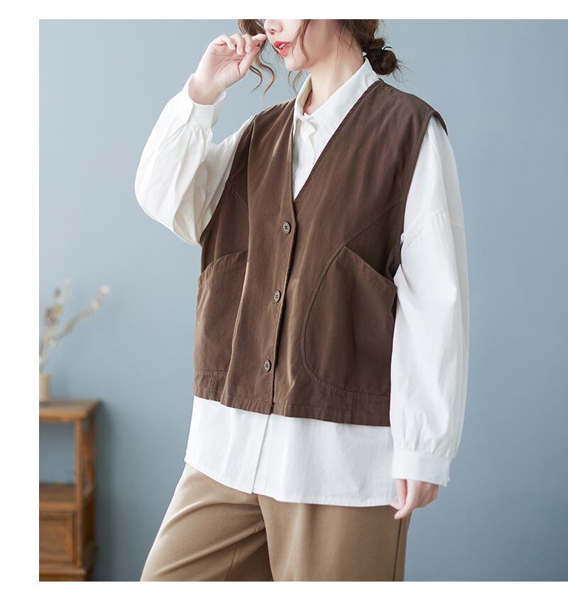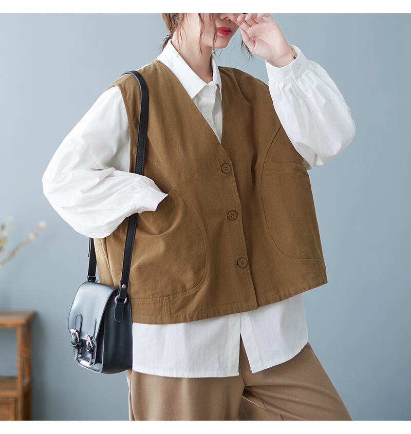 ショート丈ベスト ジレ トップス レーヤード ショート ショート丈 袖なし ノースリーブ Vネック ストレート ワイド ポケット 前開き シンプル カジュアル おしゃれ お洒落 レトロ こなれ感 ラフ メンズライク 個性的 無地 春 夏 秋 10代 20代 30代 40代 レディース 女性用 ママ 女の子 学生 通学 お出かけ 休日 アウトドア 旅行 着回し 普段使い 重ね着 お揃い ファッション コーデ スタイル 楽ちん ゆったり ゆる M L XL 2XL 黒 ブラック 茶色 ブラウン ベージュ | Ritta