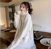 モコモコ素材が可愛いケーブルニットのセーターです。