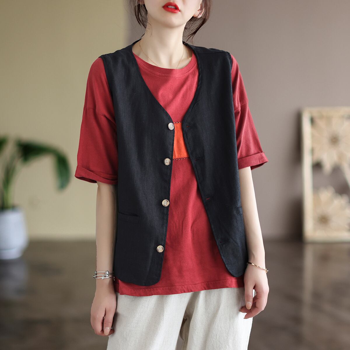 ジレベスト トップス ベスト レイヤードコーデ ノースリーブ Vネック ストレート ポケット 前開き かわいい 大人可愛い シンプル カジュアル アクセント 大人 おしゃれ お洒落 レトロ 大人女子 こなれ感 ラフ 無地 春 夏 秋 10代 20代 30代 40代 50代 60代 レディース 女性用 ママ マタニティ 学生 通学 お出かけ 休日 アウトドア 旅行 海 着回し 普段使い 重ね着 ファッション コーデ スタイル 楽ちん M L XL 2XL 黒 ブラック 茶色 ブラウン 灰色 グレー | Ritta