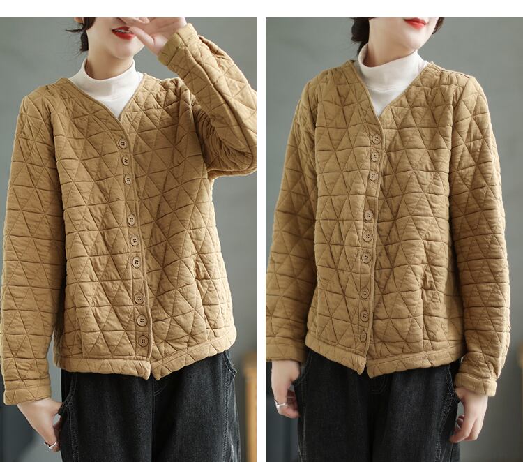 キルティングアウター アウター ジャケット ジャンパー 上着 もこもこアウター 袖あり 長袖 Vネック 襟なし ストレート もこもこ モコモコ 前開き かわいい 大人可愛い シンプル カジュアル 大人 おしゃれ お洒落 レトロ 大人女子 こなれ感 個性的 存在感 無地 冬 10代 20代 30代 40代 50代 60代 レディース 女性用 ママ 学生 通学 デート お出かけ 休日 アウトドア 着回し 普段使い 重ね着 M L XL 2XL 黒 ブラック 緑 グリーン 茶色 ブラウン ベージュ | Ritta