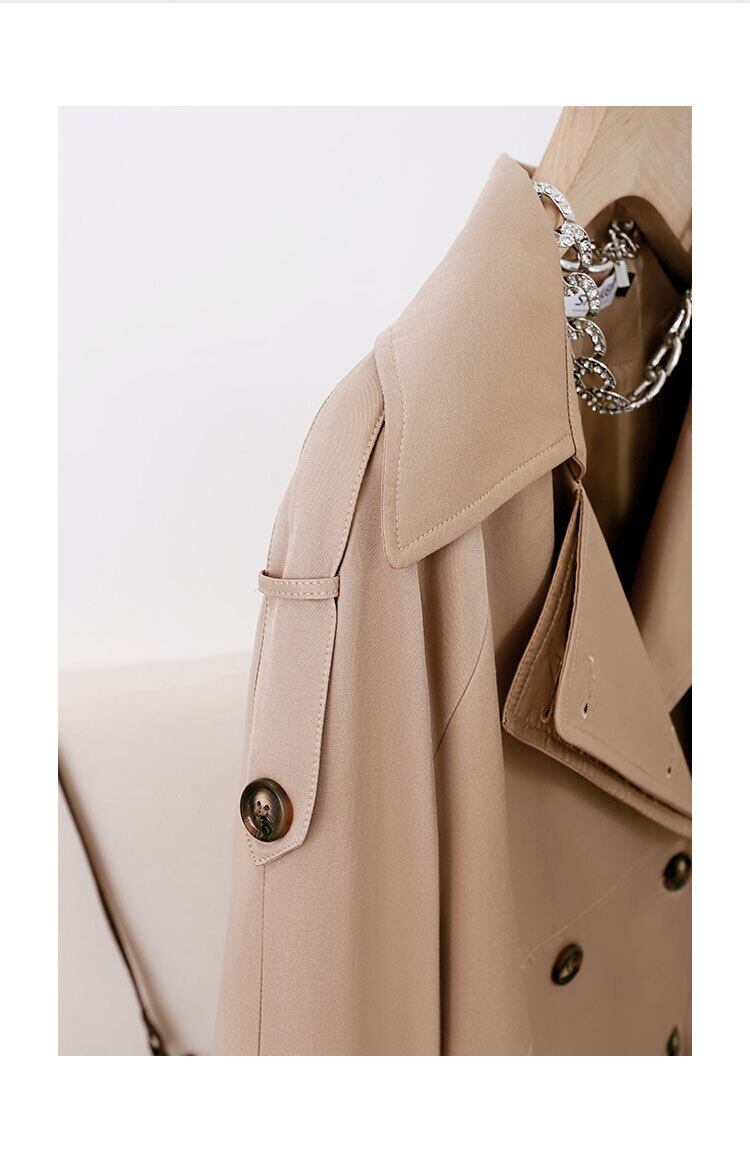ハーフ丈感でかっちりし過ぎず可愛らしい雰囲気を演出するトレンチコート。