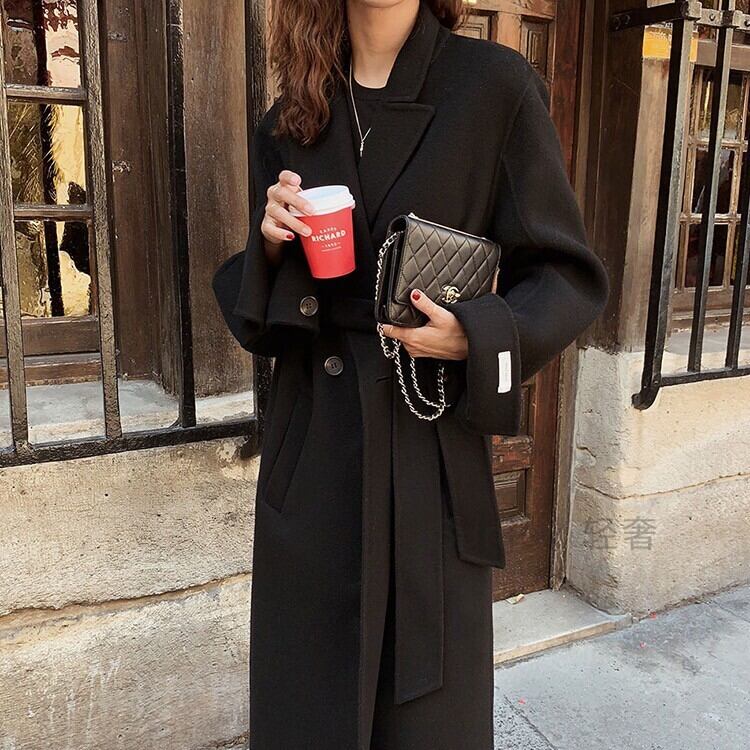 しっかりとした生地感で高級感を感じさせるロングコート。