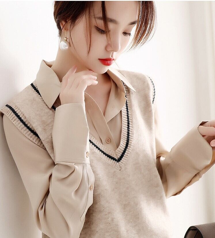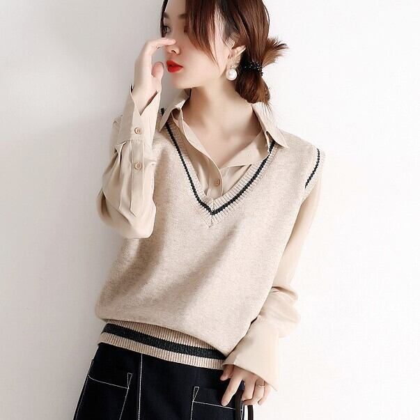 こなれた雰囲気のカラーがポイントの、オーソドックスなニットベスト。