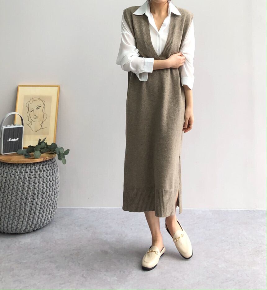 ノースリーブニットワンピース レイヤードコーデ ワンピース プルオーバー ニットワンピース ミディアム丈 袖なし ノースリーブ Vネック 襟なし ストレート サイドスリット 伸縮性 大人可愛い きれいめ シンプル カジュアル 大人 上品 おしゃれ お洒落 大人女子 こなれ感 無地 秋 20代 30代 40代 レディース 女性用 ママ デート お出かけ 休日 着回し 普段使い 重ね着 ファッション コーデ スタイル 楽ちん フリーサイズ 黒 ブラック カーキ | Ritta