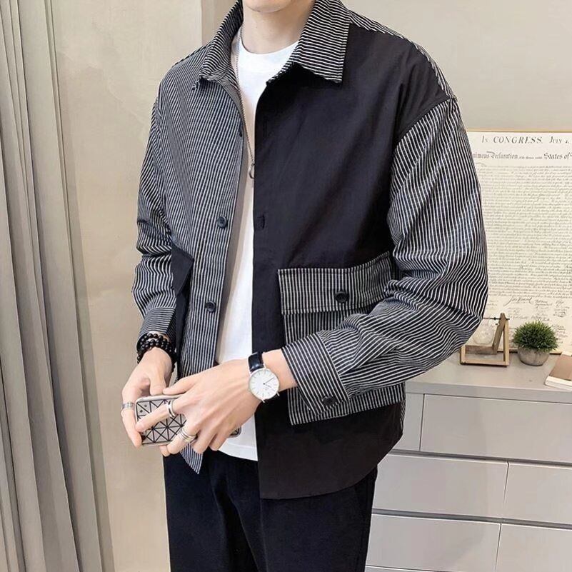 トップス シャツ 袖あり 長袖 襟付き ストレート 切り替えデザイン 前開き 薄手 カジュアル 大人 上品 おしゃれ お洒落 かっこいい クール モダン 主役級 存在感 ストライプ 春 秋 10代 20代 30代 40代 メンズ 男性用 男の子 オフィス 通勤 学生 通学 お出かけ 休日 着回し 普段使い 重ね着 韓国 韓国系 オルチャン ファッション コーデ スタイル 体系カバー プレゼント M L XL 2XL 3XL 大きいサイズ 大きめ ビッグサイズ ゆったり ゆる 黒 ブラック カーキ | Ritta