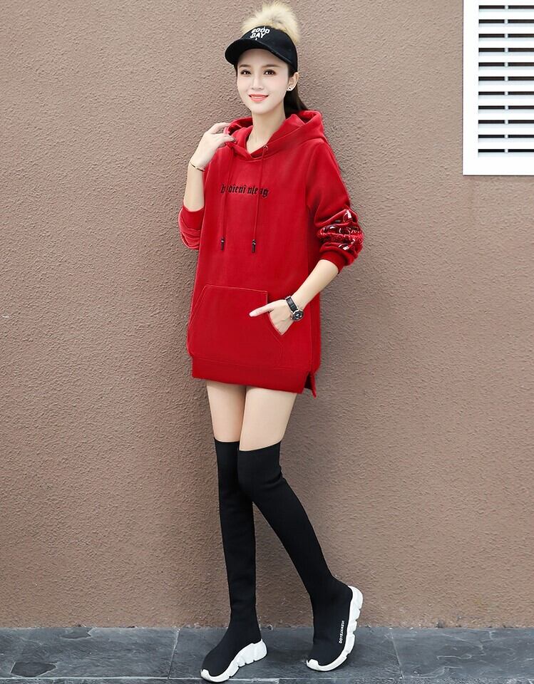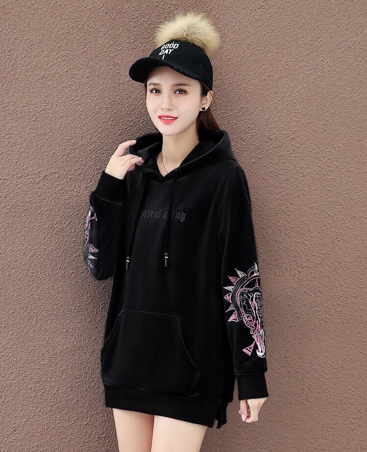 トップス プルオーバー パーカー ロング丈 長袖 萌袖 ラウンドネック ストレート 刺繍 フード付き ポケット ベルベット かわいい 大人可愛い カジュアル 大人 おしゃれ かっこいい ラフ ルーズ 個性的 存在感 秋 冬 10代 20代 30代 40代 学生 通学 お出かけ 休日 普段使い お揃い 双子 韓国 韓国系 オルチャン ファッション コーデ スタイル 楽ちん 体系カバー 定番 M L XL 2XL 3XL 大きいサイズ 大きめ ビッグサイズ ゆったり ゆる サイズ 黒 ブラック 赤 レッド | Ritta
