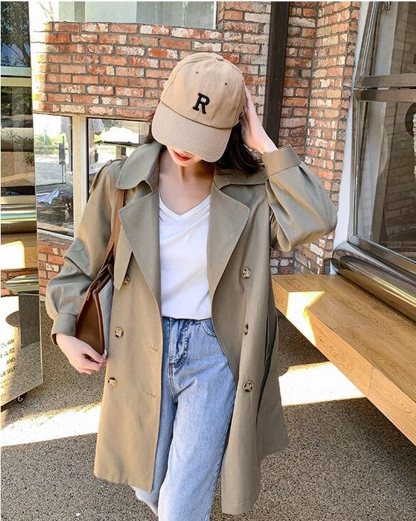 定番のトレンチコートに、トレンドのふわっとした萌え袖をプラスした、