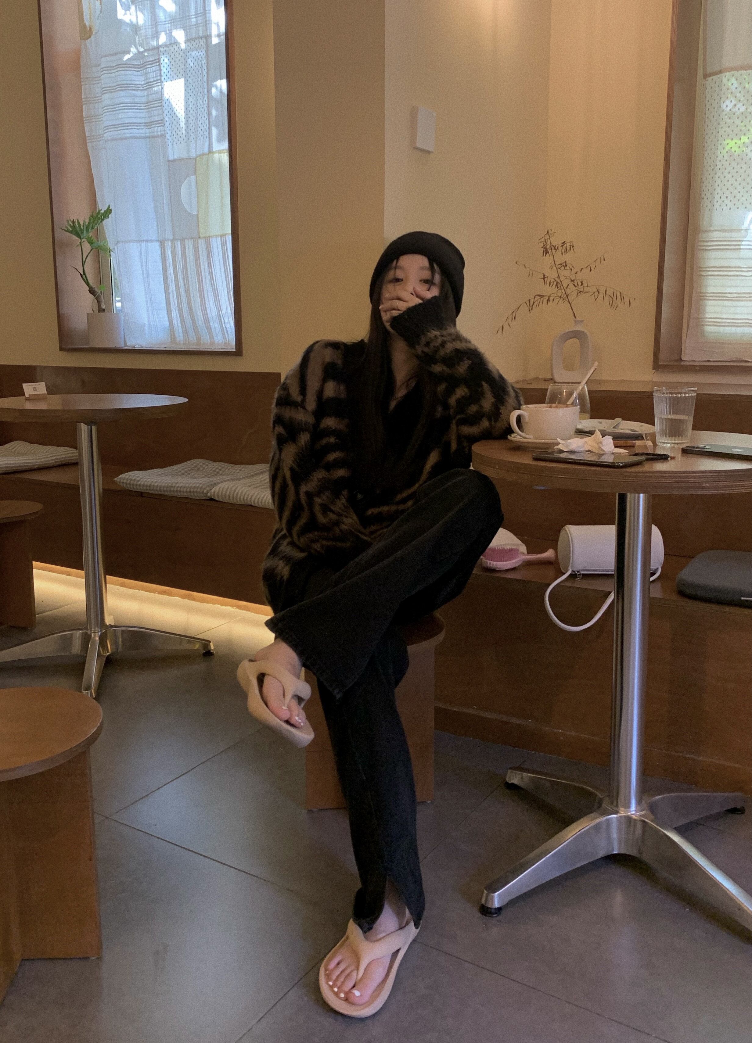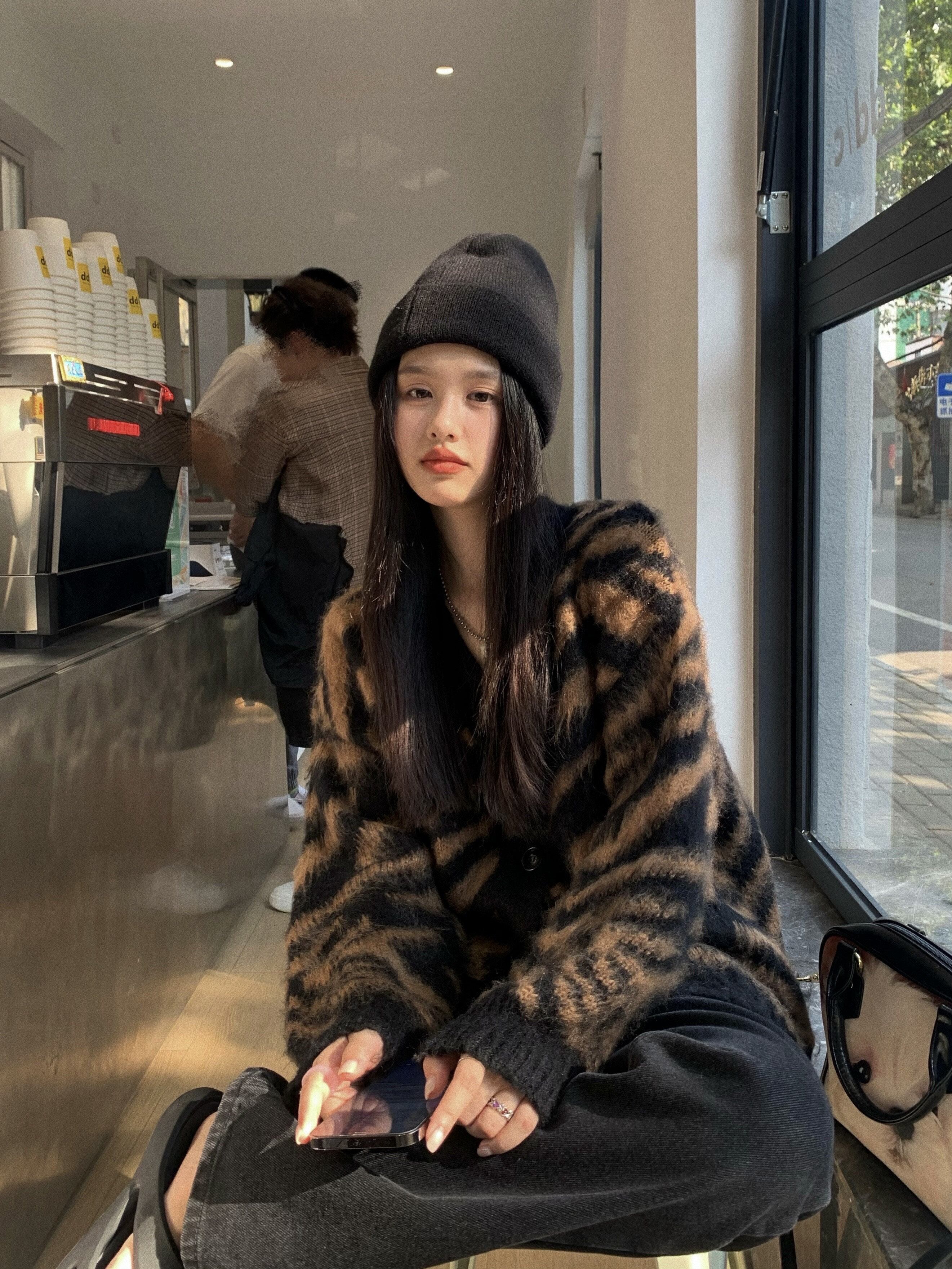 ゼブラ柄×ふわふわ生地が可愛いニットカーディガン。