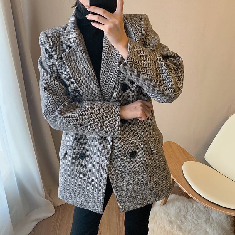 ヘリンボーンの大人っぽいミドル丈ジャケットです。