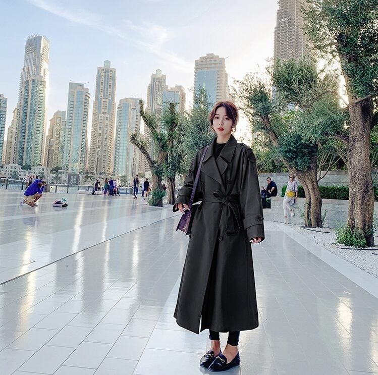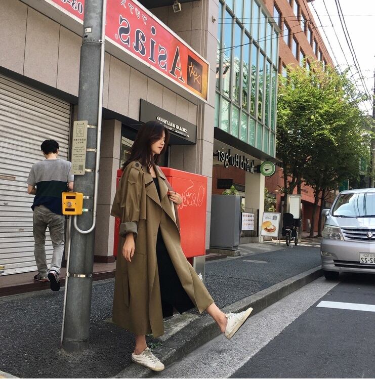 定番のトレンチコートの袖を少し太めにしてトレンド感をプラス。