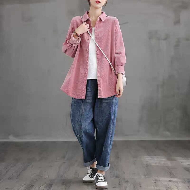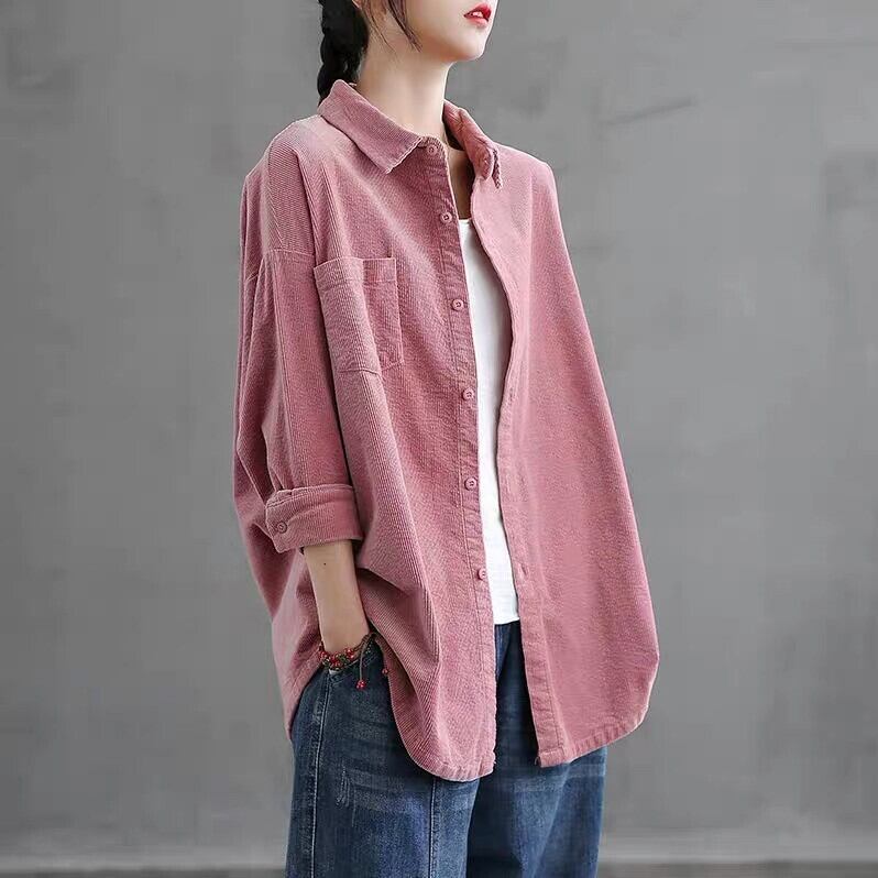トップス シャツ 長袖 ボリューム袖 ドロップショルダー 襟付き ワイド Aライン 前開き コーデュロイ かわいい 大人可愛い シンプル カジュアル おしゃれ レトロ 大人女子 ラフ メンズライク マニッシュ ボーイッシュ ルーズ 無地 秋 冬 10代 20代 30代 40代 50代 60代 ママ 学生 通学 お出かけ 公園デビュー 休日 旅行 着回し 普段使い 重ね着 体系カバー 定番 M L XL 2XL 3XL 大きいサイズ ビッグサイズ ゆったり ゆる 灰色 グレー ピンク オレンジ | Ritta