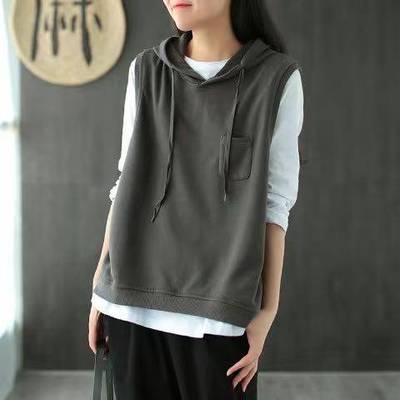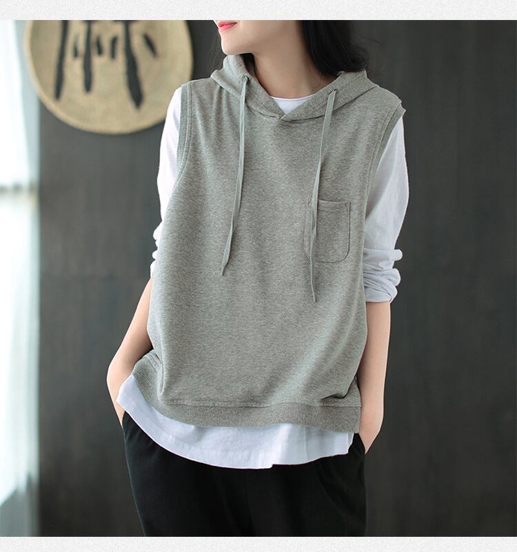 薄手の生地でレイヤードコーデにぴったりなノースリーブフーディー。